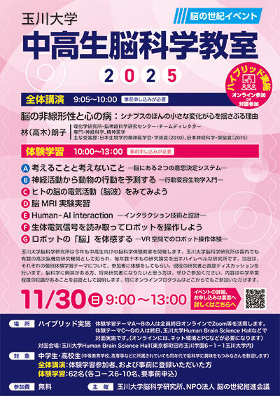 問い合せ | 玉川大学脳科学研究所 奥村 哲/ bc.event[at]tamagawa.ac.jp |